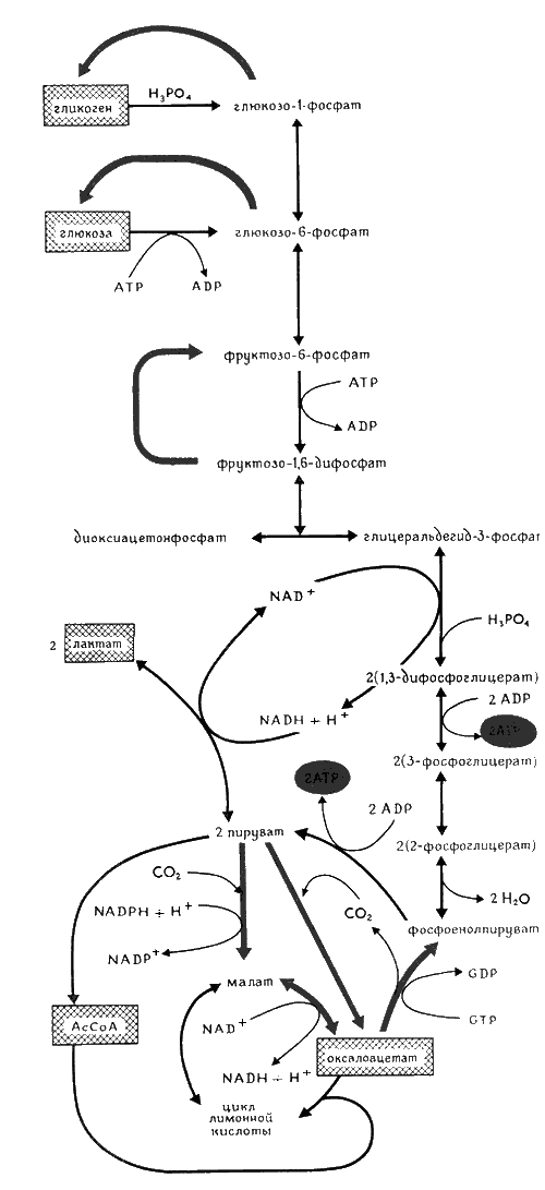 Рис. 8. Схема реакций гликолиза.