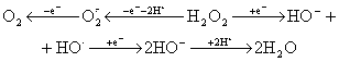 В ходе этих реакций образуются супероксидный и гидроксильный радикалы, ведущие к окислительно-восстановительному разрушению веществ клеток. Если предположение об Н2О2 как доноре электронов при оксигенном фотосинтезе соответствует действительности, то следует ожидать, что фотосинтезирующие объекты будут проявлять определенную устойчивость к Н2О2 и даже испытывать его стимулирующее влияние, поскольку концентрация Н2О2 в среде незначительна. Предполагается, что у растений существуют механизмы концентрирования Н2О2 в клетке, например, в результате транспирации. Генераторами Н2О2 в клетке являются тилакоидные мембраны, митохондрии, пероксисомы, эндоплазматический ретикулум, плазматическая мембрана. Проведено исследование действия Н2О2 на фототрофной рост цианобактерий. Испытано: прямое действие добавленного Н2О2; действие Н2О2, генерируемого внутриклеточно; действие ингибирования внутриклеточного разложения Н2О2. Во всех вариантах наблюдалось лишь подавление роста цианобактерий. Эти результаты согласуются с данными о пагубном действии Н2О2 в изолированных хлоропластах: Н2О2, образующийся как в электрон-донорной, так и в электрон-акцепторной ветви фотосистемы II, вызывает фотоингибирование водоокисляющего комплекса. Маловероятно, чтобы Н2О2 мог служить донором электронов при оксигенном фотосинтезе. Связанная форма Н2О2, вероятно, является интермедиатом при фотоокислении Н2О. Пара О2/Н2О2- возможный природный аналог ADRY-реагентов, которые, индуцируя циклический и нециклический поток электронов в фотосистеме II, способны предотвращать эффект фотоингибирования.